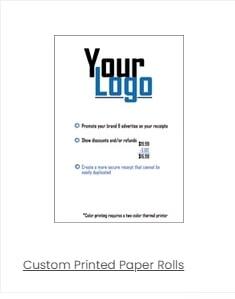 Use your receipt as a marketing tool by ordering custom printed paper rolls. Your logo, brand, or store name can be printed on the back of a thermal paper roil. Choose from a number of colors and sizes. Heavyweight thermal paper rolls are available too.